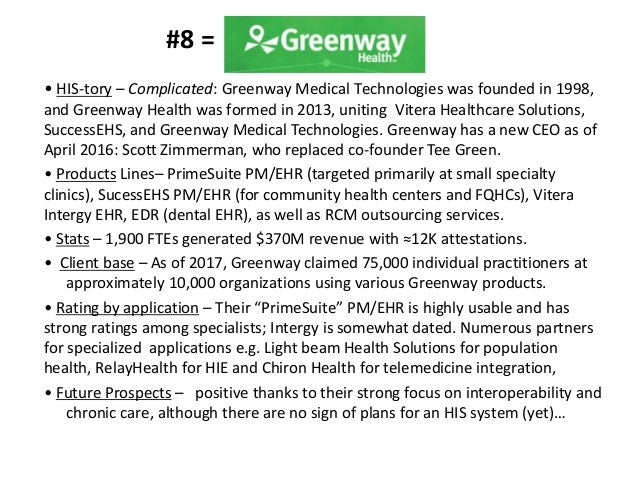 Greenway Health's roots extend to the founding of Greenway Medical Technologies in 1998, a health IT software and services provider offering electronic health records, practice management and ... Read Full Source